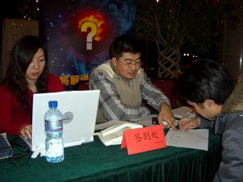 截止12月6日晚21:00,签到参加中央电视台《谁将解说北京奥运》主持人大赛复赛的选手已达148人,大赛工作人员耐心接待了所有前来签到的选手,准备第二天的复赛环节。