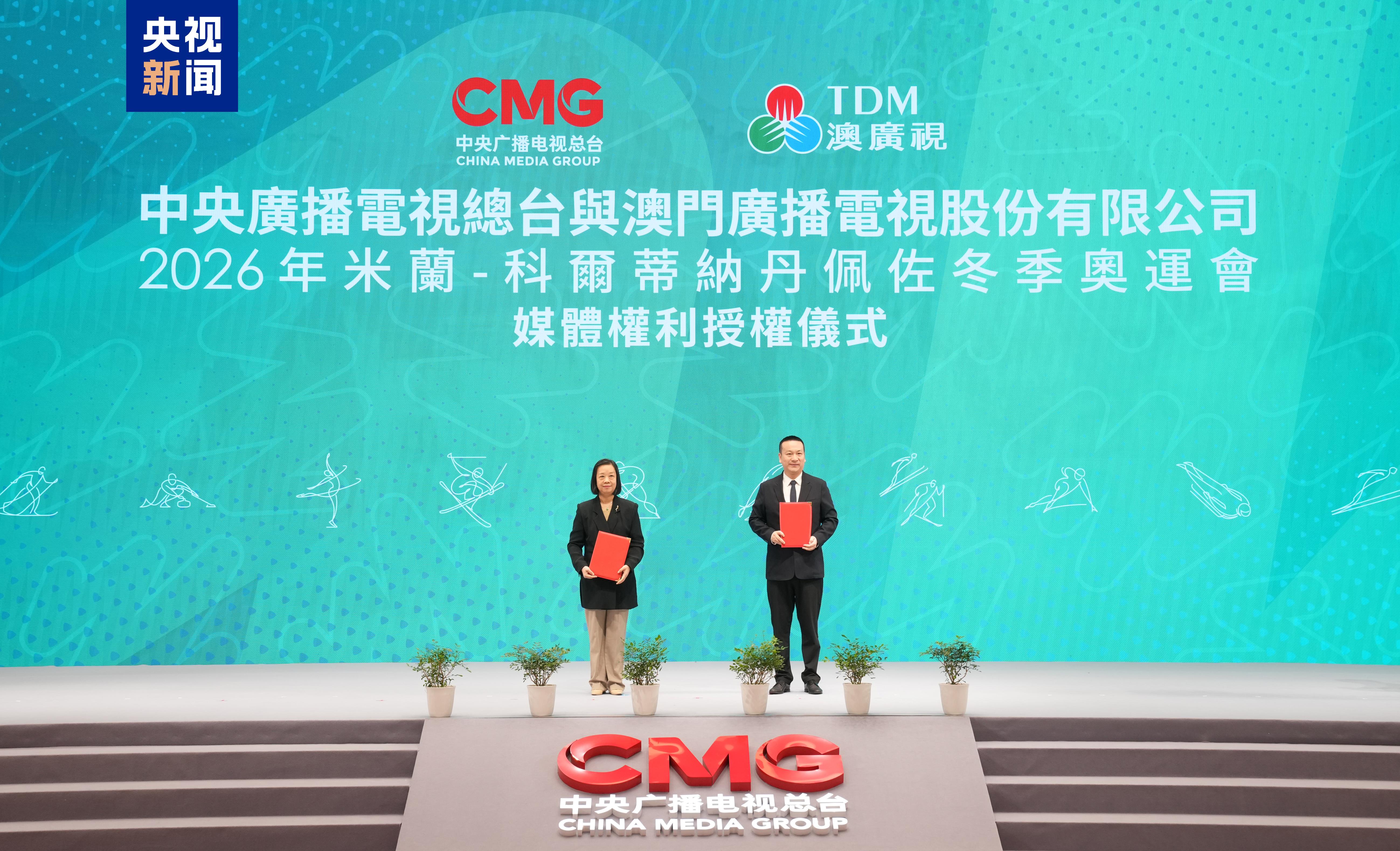 9月28日,中央广播电视总台和澳门广播电视股份有限公司在澳门交换《第25届冬季奥林匹克运动会赛事媒体权利许可协议》。总台向澳广视授权2026年米兰-科尔蒂纳丹佩佐冬季奥运会媒体权利。