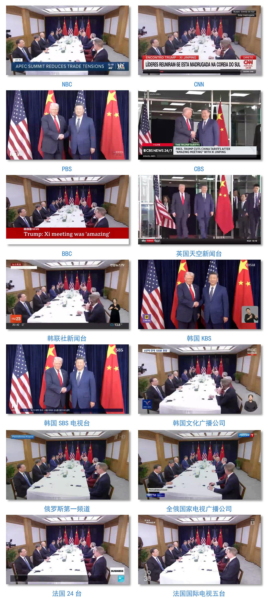 总台报道时效全面领先美西方主流媒体,成为全球媒体争相转引的独家信源。总台直播信号和新闻视频被美联社、CNN、彭博电视、NBC、CNBC等美国媒体第一时间采用,韩国KBS、SBS、韩联社新闻台、YTN电视台、韩国文化广播公司等5家韩国主流媒体全程转播,BBC、路透社、法新社、法国24台、德国之声、全俄国家电视广播公司、葡萄牙国家广播电视台、日本朝日电视台、新加坡亚洲新闻台、印度ZEE传媒集团等几乎所有海外主流媒体广泛转载。美国《国际日报》、英国富中传媒、《欧洲侨报》《北欧时报》《葡新报》、希中网、西非在线、日本华商网、南亚在线等全球主流华文媒体,以及香港明珠传媒、澳门明言传媒等港澳媒体也纷纷转发。
