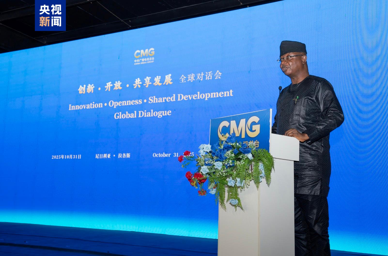 当地时间10月31日,由中国中央广播电视总台和中国驻拉各斯总领事馆联合主办的“创新·开放·共享发展”全球对话会尼日利亚专场在拉各斯举行。中宣部副部长、中央广播电视总台台长慎海雄,尼日利亚青年发展部长阿约德勒·奥拉万德作视频致辞。中国驻拉各斯总领事严宇清、尼日利亚总统媒体与特殊职责高级特别顾问图恩德·拉赫曼、尼日利亚编辑协会主席埃泽·阿纳巴、尼日利亚工商矿农商会联合会总干事索拉·奥巴迪姆出席活动并致辞。来自中尼两国政界、工商界、学术界及媒体的约300名嘉宾参加活动。