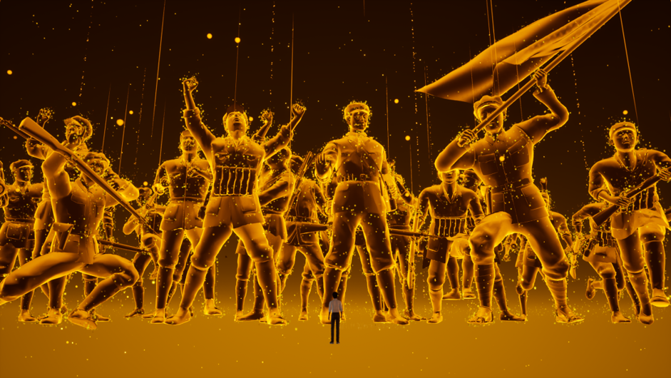 该展览也是央视频公司深入贯彻习近平文化思想,深耕国家文化数字化战略的成功实践。针对该展览的设计开发,央视频公司深挖遵义会议红色资源内涵,创新运用VR、AI、全息影像等技术,打造“飞”临点金山、竹排“渡”江、枪炮“震”天等体验场景,全景式再现遵义会议重大历史转折,实现革命历史场景的数字化呈现与交互式体验,打造“科技+红色教育”巧妙融合的又一“红色新坐标”。