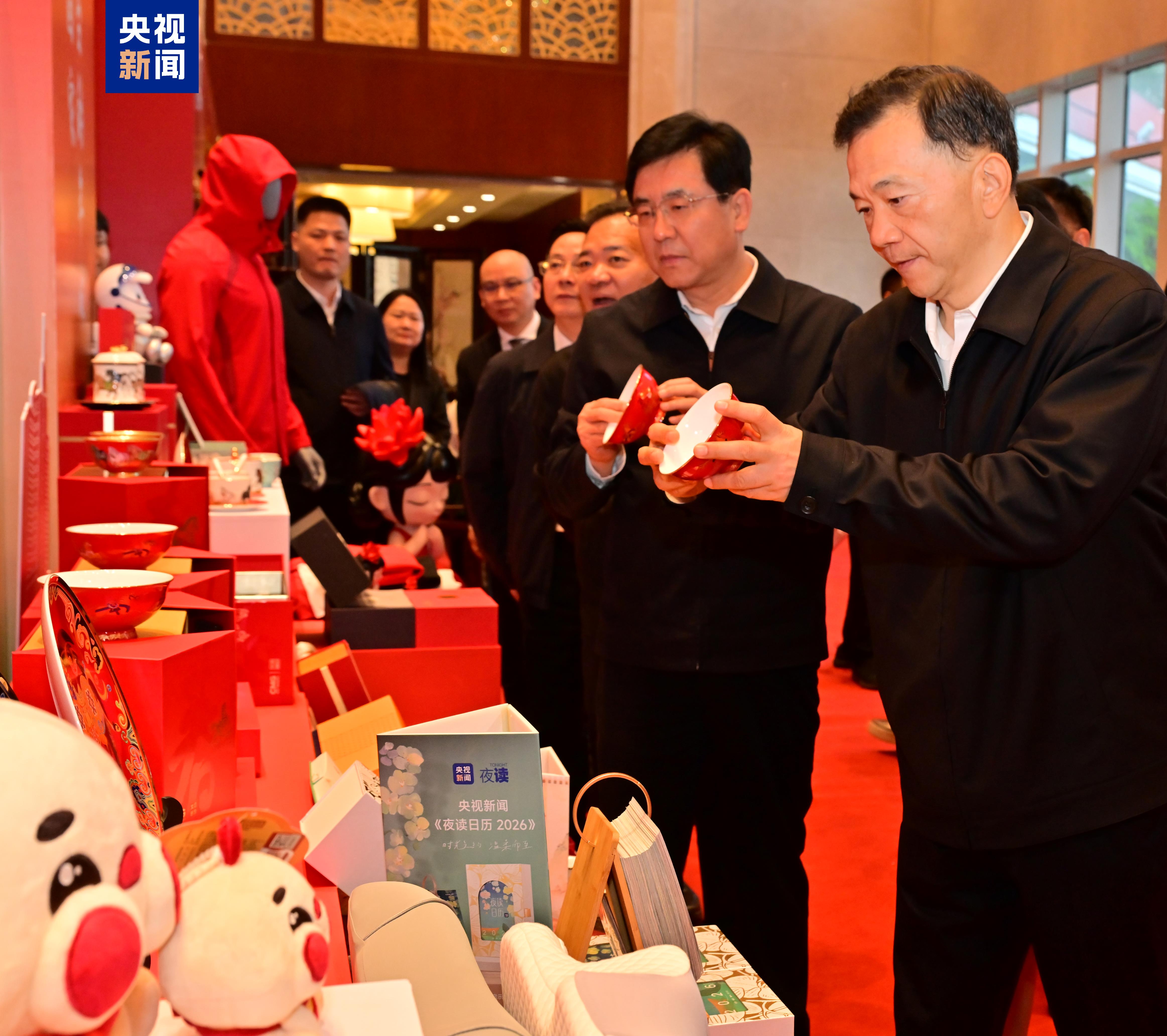 中央广播电视总台连续多年携手商务部和多地政府,创新开展“全国消费促进月”“京津冀消费季”“粤港澳大湾区消费季”“上海五五购物节”等活动,助力各地提振消费信心、创新消费场景、激发消费潜力。在现场主题消费展总台展区,2026总台“大春晚季”主题文创、总台味道·咖啡及系列IP文创产品等集中亮相,红色喜庆、年味十足。
