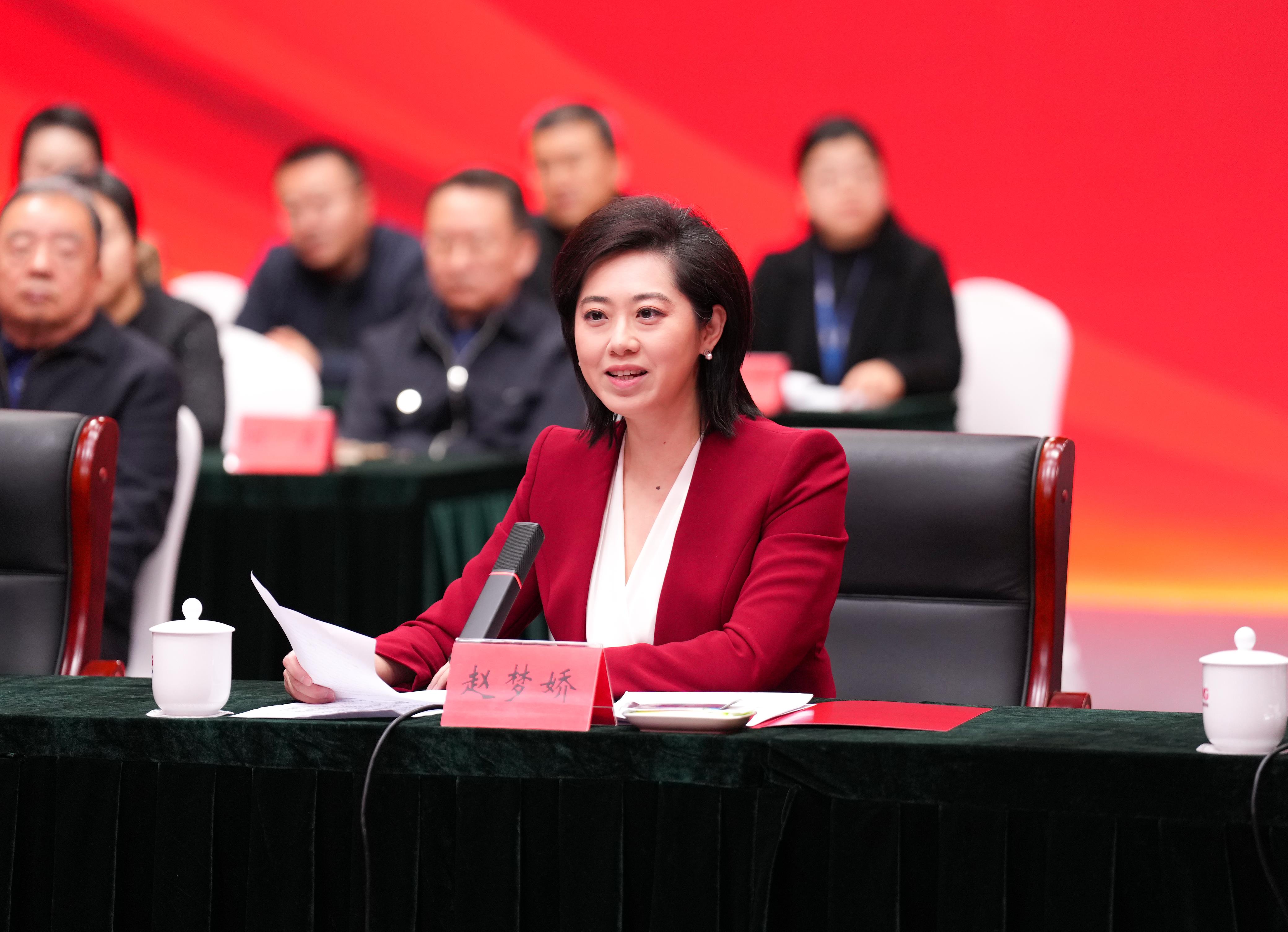 一线广播工作者代表、总台“中国之声”播音员赵梦娇(林溪)结合四次在天安门城楼上现场直播国之大典的工作经历,分享新时代总台广播人挺进媒体系统性变革主战场的创新实践。表示要充分利用人工智能、菁彩声等新技术,通过社交平台、智能终端,让主流声音精准触达年轻受众,让人民广播的声音在新时代新征程上更加响亮。