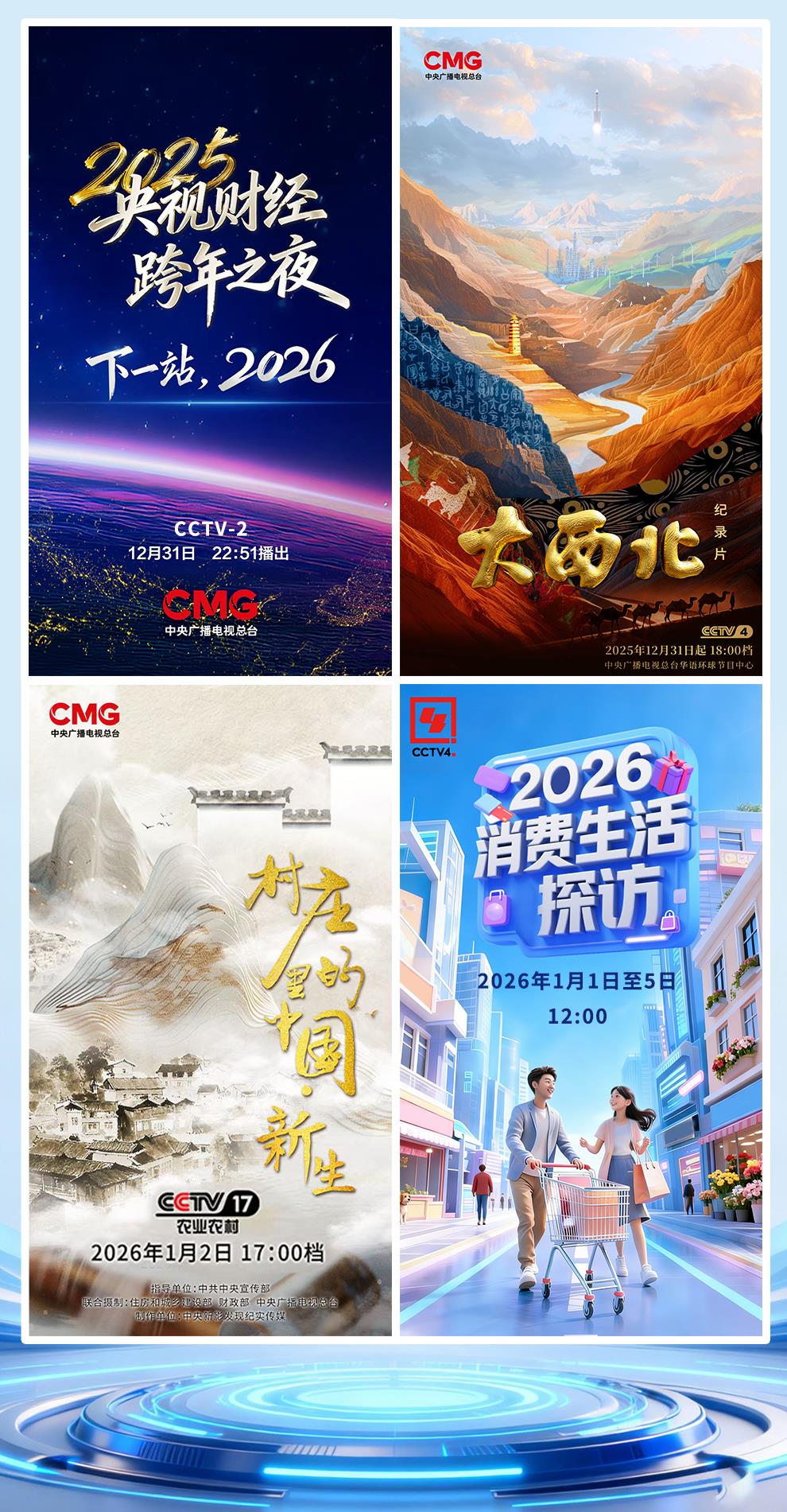 《2025央视财经跨年之夜》邀请六大行业领军者,在先进制造、人工智能等前沿领域展开思想碰撞,为中国经济高质量发展注入智慧动能。纪录片《大西北》深入我国西北大地,描绘一幅充满生机的新时代西北发展全景图。《村庄里的中国·新生》带您见证传统村落在新时代焕发新生,看乡村振兴迎来发展新机遇。《2026消费生活探访》聚焦县域经济与青年创业,捕捉“十五五”开局的市场活力,你我身边的故事,悄然记录着经济发展的每一次脉动。