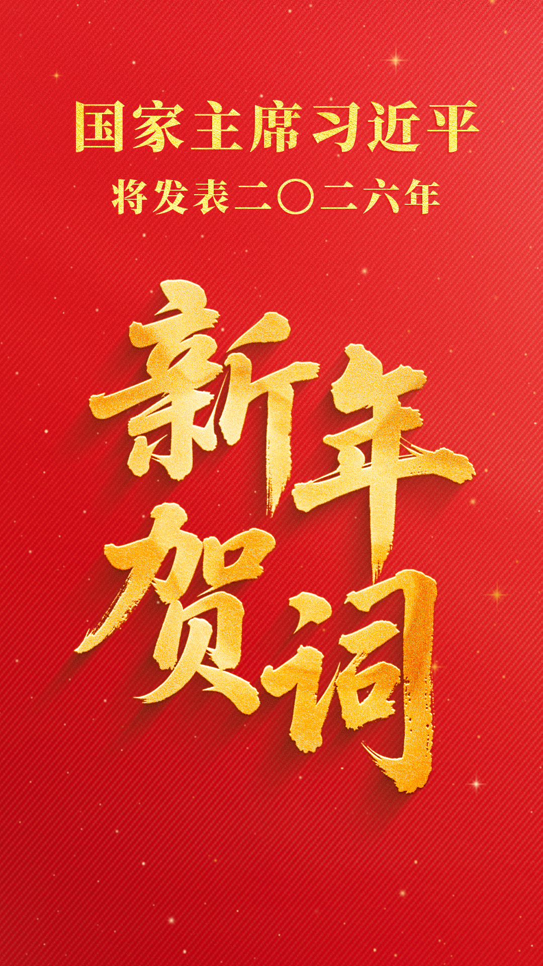 国家主席习近平将于12月31日晚7时通过中央广播电视总台和互联网,发表二〇二六年新年贺词。中央广播电视总台所属中央电视台综合频道、新闻频道、中文国际频道、4K频道,中国国际电视台各外语频道,中央人民广播电台,中国国际广播电台,以及人民网、新华网、央视新闻客户端等中央主要新闻媒体所属网站、新媒体平台将准时播出。