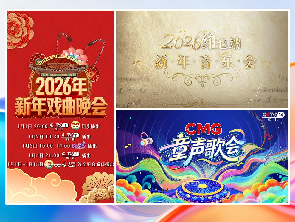 年度之约如期而至!《2026年新年戏曲晚会》《2026年维也纳新年音乐会》邀您聆听穿越时光的经典旋律。以歌声见未来,《中国唱将》《CMG童声歌会》唱出新年心声。