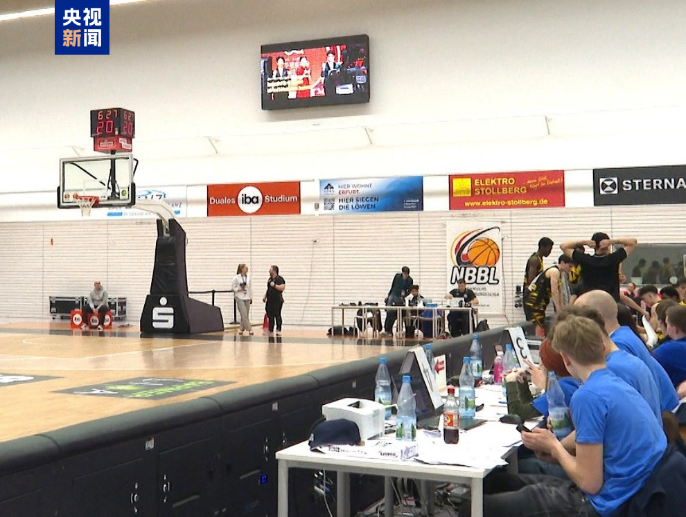 当天,德国男子篮球乙级联赛埃尔福特雄狮队对阵路德维希堡篮球学院队的比赛在德国中部城市埃尔福特举行。傍晚时分,比赛尚未开始,看台上已经坐满观众。对于当地球迷来说,这是一场熟悉的联赛比赛,而赛前的一段特别画面,吸引了不少人的目光。随着球场一侧篮板上方的屏幕亮起,总台春晚宣传短片出现在观众眼前。短片中热闹的节庆场景、绚丽的舞台画面与赛场氛围交织在一起,成为比赛前的一段特别插曲。