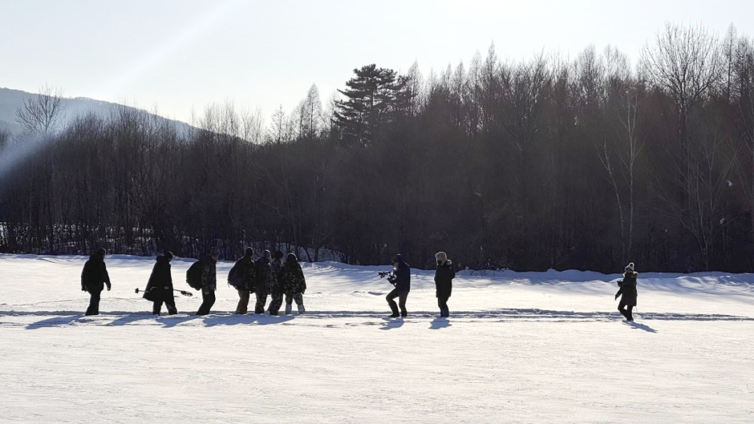 △《山河为证》摄制组在小兴安岭的鸡冠山林区拍摄“寻访东北抗联密营遗址”段落
