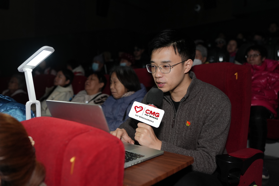 财经节目中心新入职主持人田尹男为现场视障朋友讲解电影《惊蛰无声》,用细腻生动的语言细致描述电影画面与情节,带领大家沉浸式感受光影魅力。孟湛东、刘仲萌、郭若天、白影、刘雨哲、王宇等主持人及财经中心统筹策划部党支部党员代表共12位志愿者共同参与本次活动,并为视障朋友送上保温杯、挎包等总台文创产品,以陪伴与关怀传递温暖与尊重。