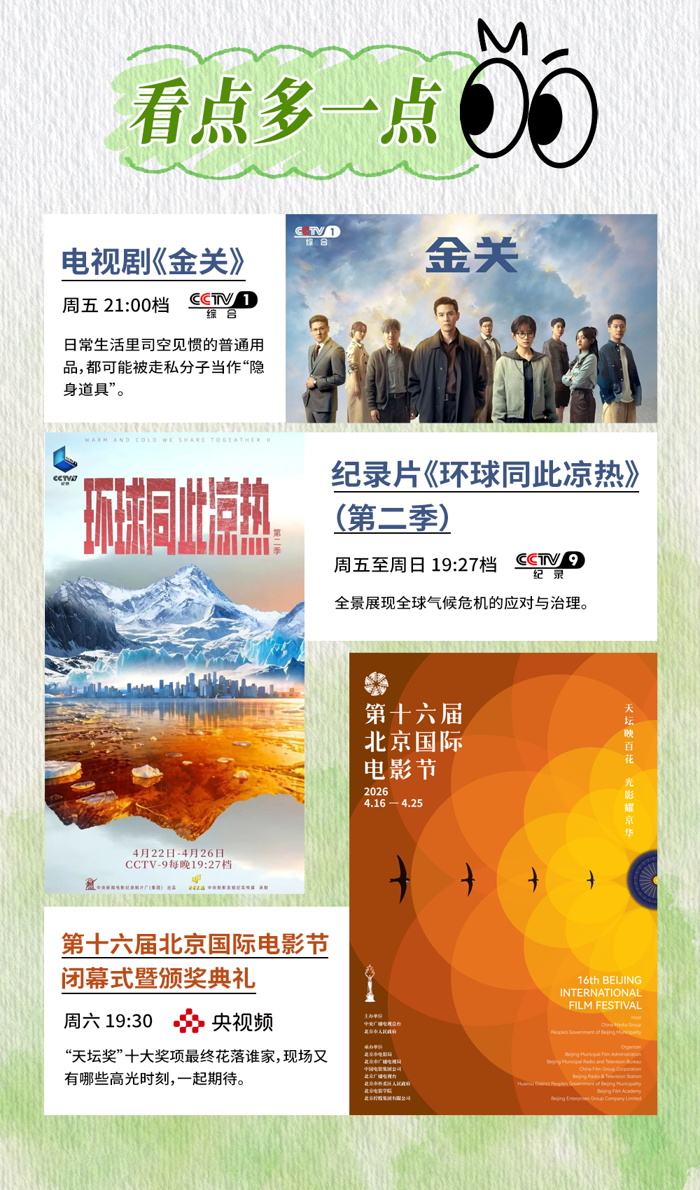 正在阅读:总台周末看点丨调到喜欢的频道