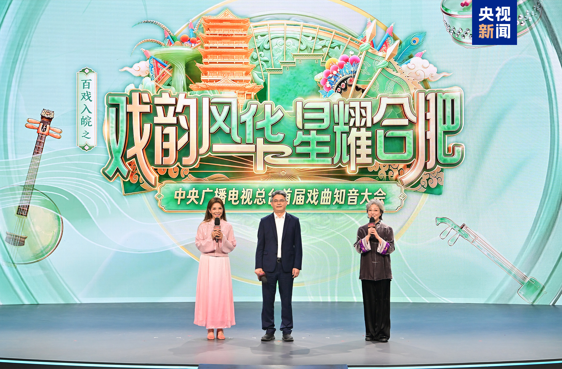 △合肥市委宣传部副部长赵明录、昆曲演员魏春荣、总台主持人朱迅推介《总台首届戏曲知音大会》