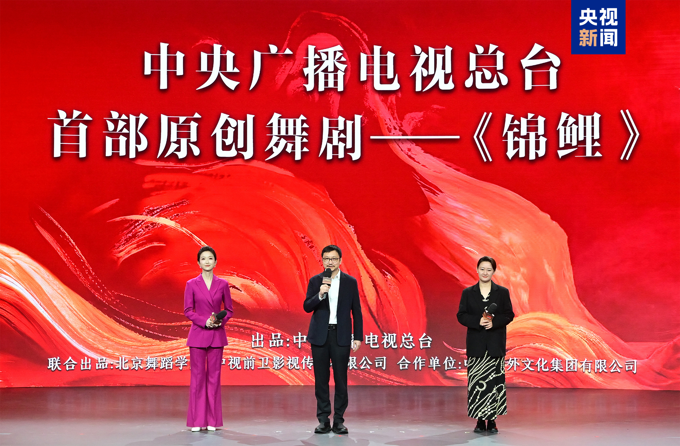 △北京舞蹈学院院长许锐、中演演出院线发展有限责任公司副总经理于婷婷、总台主持人刘心悦推介《锦鲤》