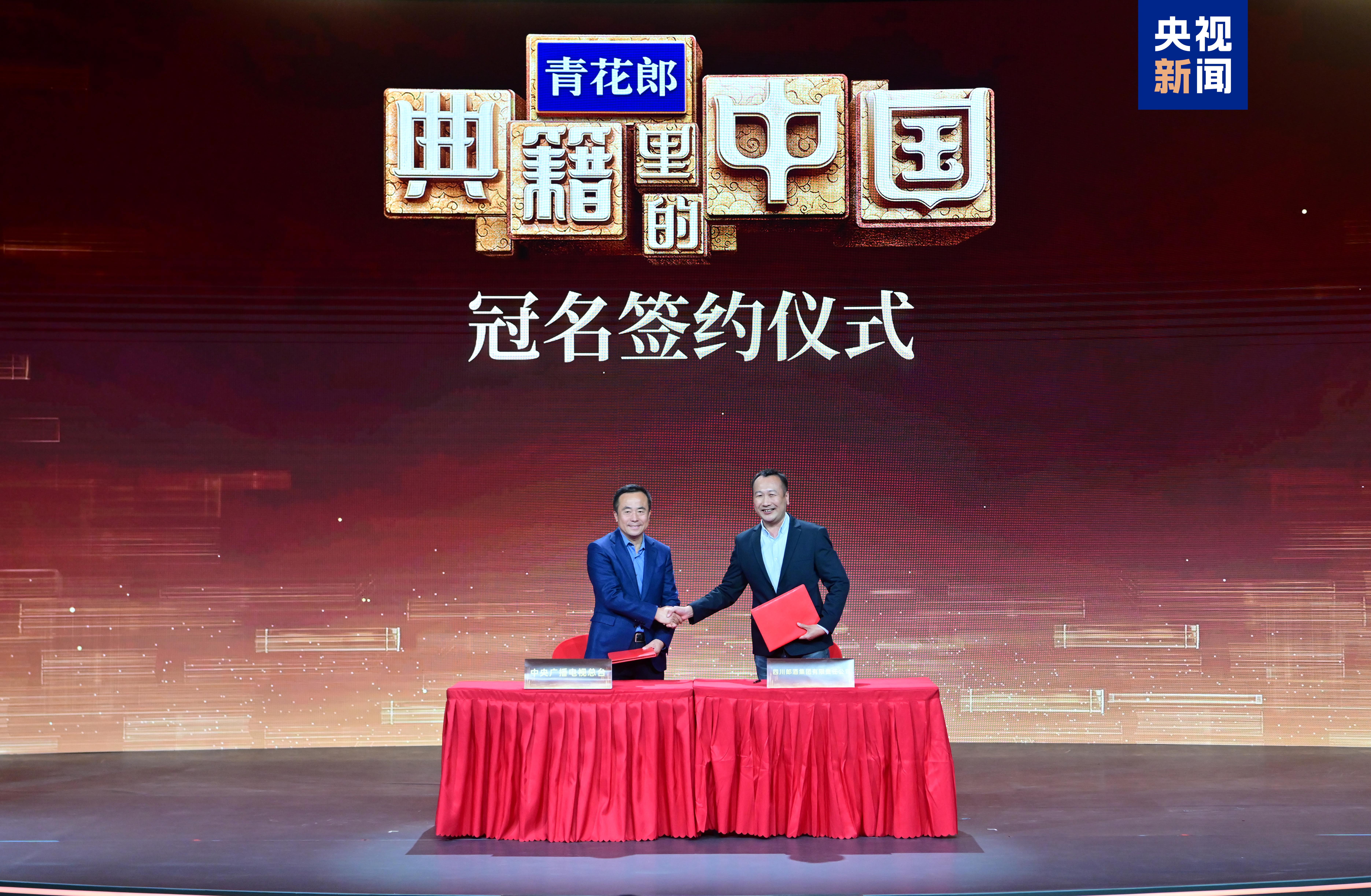 △中央广播电视总台总经理室党委书记任学安与四川郎酒股份有限公司代表崔浩签约