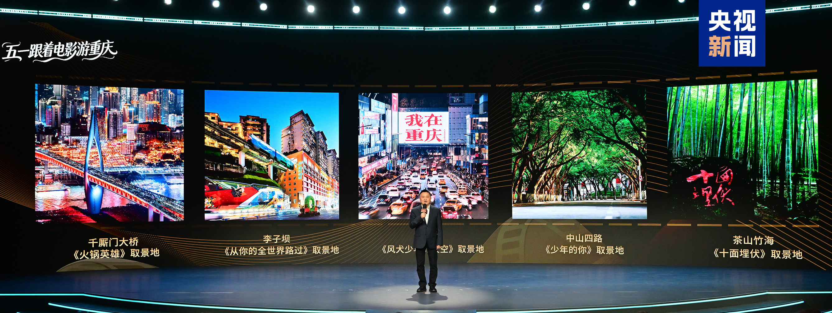 △重庆市委宣传部二级巡视员何洪元现场推介“光影伴旅 跟着电影去旅游”融媒体活动