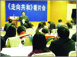 对广告公司和企业客户来说,这又是一个借助优势平台,进行广告传播和营销策划的好机会。今天到会的众多广告公司代表普遍对《走向共和》的热播充满信心,据一位广告公司老总预测,《走向共和》的收视率不会低于《雍正王朝》和《大宅门》,再加上播出上的创新,“五一”《新闻频道》开播后一套每晚两集这些以前想都不敢想的利好消息,广告效果一定极佳,他们公司已经在客户企业的要求下预订了该剧好几个贴片广告位置。