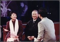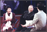 主持人:我想电视机前可能会有很多观众,一直以来都没有搞清楚谁是乔榛,谁是丁建华,因为我们一直以来都是女士在前,所以一直有人把乔榛当成是女的,丁建华是男的。你们二位在生活当中怎么称呼?