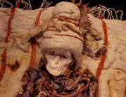 · " class=title_doc>揭开棺盖后露出的婴儿干尸,死者在牛皮包裹的棺船中入睡。