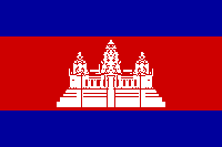 国旗:呈长方形,长与宽之比为3∶2。由三个平行的横长方形相连构成,中间是红色宽面,上下均为蓝色长条。红色象征吉祥和喜庆,蓝色象征光明和自由。红色宽面中间绘有白色镶金边的吴哥庙,这是著名的佛教建筑,象征柬埔寨悠久的历史和古老的文化。