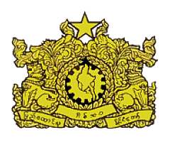 中心为一个由谷穗环绕的有14个齿的齿轮,上面绘有缅甸地图。谷穗两侧各有一个狮子,狮子被誉为缅甸的国兽,称圣狮,是吉祥的标志。顶端为一颗五角星,在其两侧和谷穗周围装饰着缅甸花卉;底部的饰带上用缅文写着“缅甸联邦”。