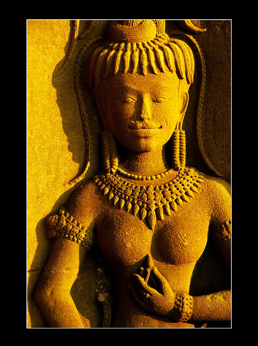 Angkor Wat Apsara是柬埔寨很常见的形象,连我们每天喝的水都是“仙女牌卫生水”,这是一个留着特别刘海的Apsara。(摄影:CCTV.com国家地理频道网友【方方正正】)