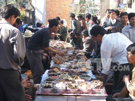 摄制组在元阳的另一个拍摄任务是长街宴。长街宴是哈尼族的一种传统习俗,每到一年一度的“昂玛突”节来临,哈尼人会在山寨里摆上一里多长的酒席,欢度节日,来到这里的游人也能一起品美味,喝米酒。