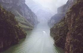 快艇在平静的湖面穿行,看起来只有一扇大门那么宽的峡谷,把我们带入了梦境般神奇美妙的天地。云雾缭绕的山峰若隐若现,千仞笔立的峻岩峭壁直插江底,攀壁附岩的裸根藤蔓奇形怪状,天造地设的众多景致气象万千,石纤道和天然镌刻的条条水线斑斑驳驳……穿行其中,仿佛置身于一条绝长的山水画廊。每一曲、每一折,都会展现一幅风格迥异的山水画,浓浓的诗意目眩神迷,还没来得及尽情地观赏,另一幅画又映入眼帘,目不暇接。高峡出平湖,一座座山峰或如虎踞,或如龙盘,或如老僧入定,或如美妇伫立……宛如大自然泼墨而出的一幅水彩画。姊妹峰、赤碧峡、鹰嘴峡青山叠翠、峰态奇趣、赤壁瀑布、飞瀑如练,直泻碧江,飞珠溅玉,移步换景,处处入画。
