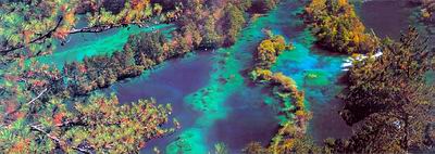 九寨山水,天然原始,四季景色变幻无穷,尤其是秋季,沿湖连绵数十里彩林美不胜收。九寨沟的精灵是水,湖、泉、河、滩连缀一体,千颜万色……