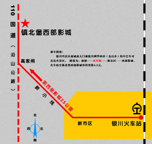 银川兴庆区温州商城对面乘银川—华西村(金山乡)的中巴车,途经南熏路、太阳神宾馆、北京路、火车站、宁夏大学,到达本景区。
