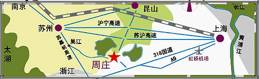 周庄属江苏省昆山市,地处沪宁经济走廊,北连昆山市区30公里,东距上海市区60公里,西临苏州市区38公里,交通便捷方便。